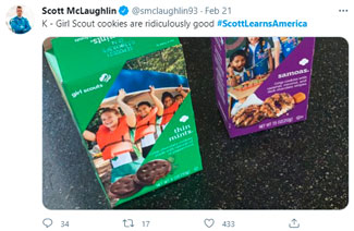 To help get on the fast track to life in the states, McLaughlin even reached out to fans via social media to encourage people to share the essential things he should experience in the U.S. Using the hashtag #ScottLearnsAmerica, McLaughlin has chronicled his new adventures and experiences with his followers, and it’s made for some very entertaining online engagement.