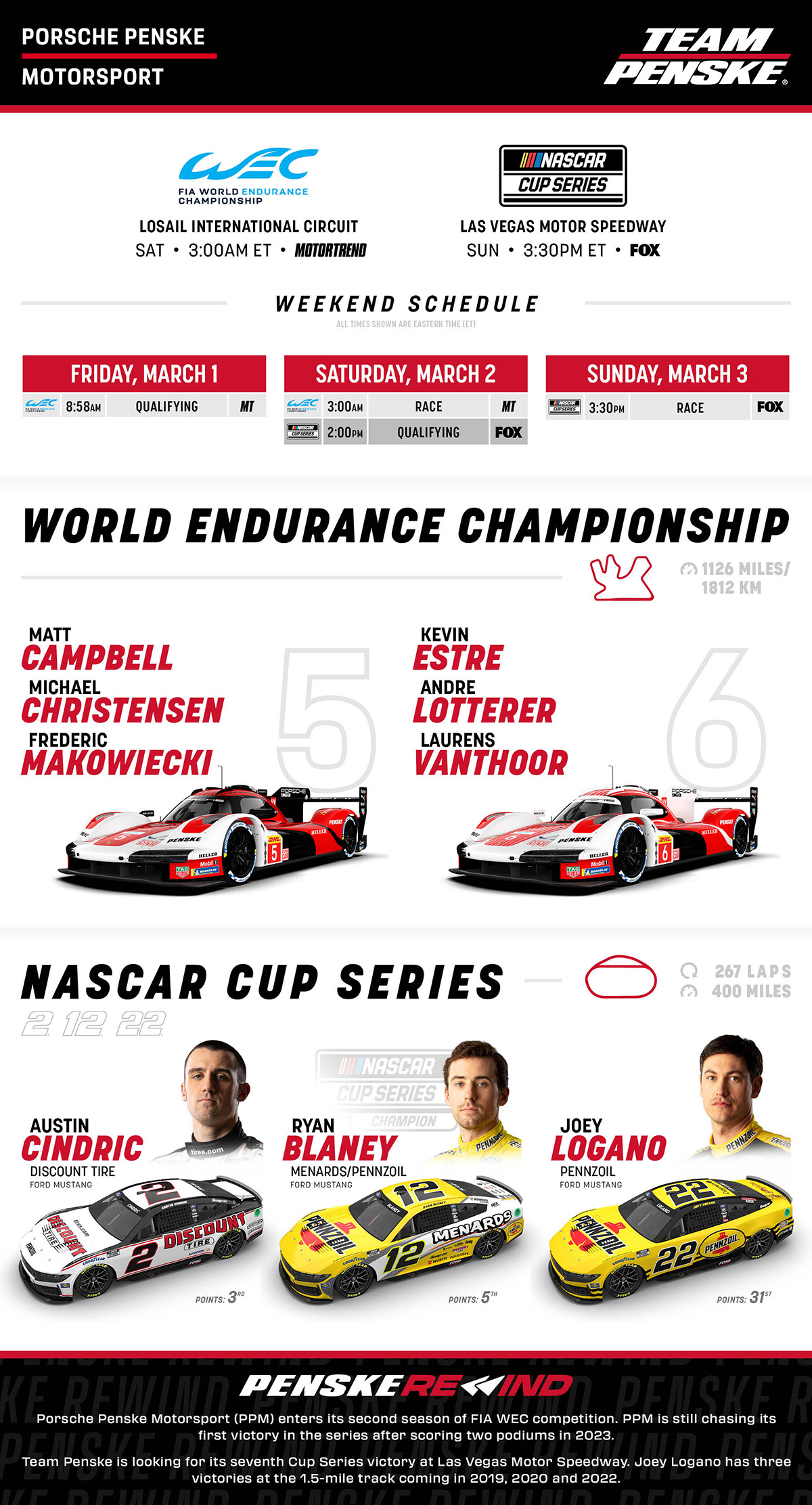 Team Penske Tune In Qatar-WEC and Las Vegas-NASCAR